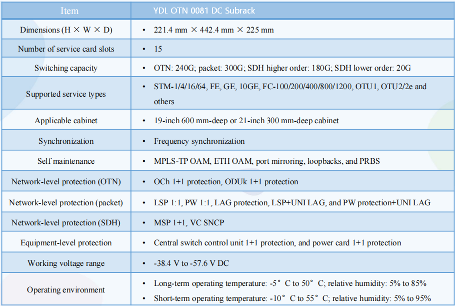 Single box supports 240G OTN crossover capacity, 300G packet crossover capacity, 180G SDH high-order crossover capacity, and 20G SDH low order crossover capacity