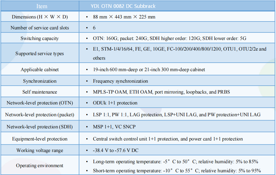 Single box supports 160G OTN crossover capacity, 240G packet crossover capacity, 120G SDH high-order crossover capacity, and 5G SDH low order crossover capacity